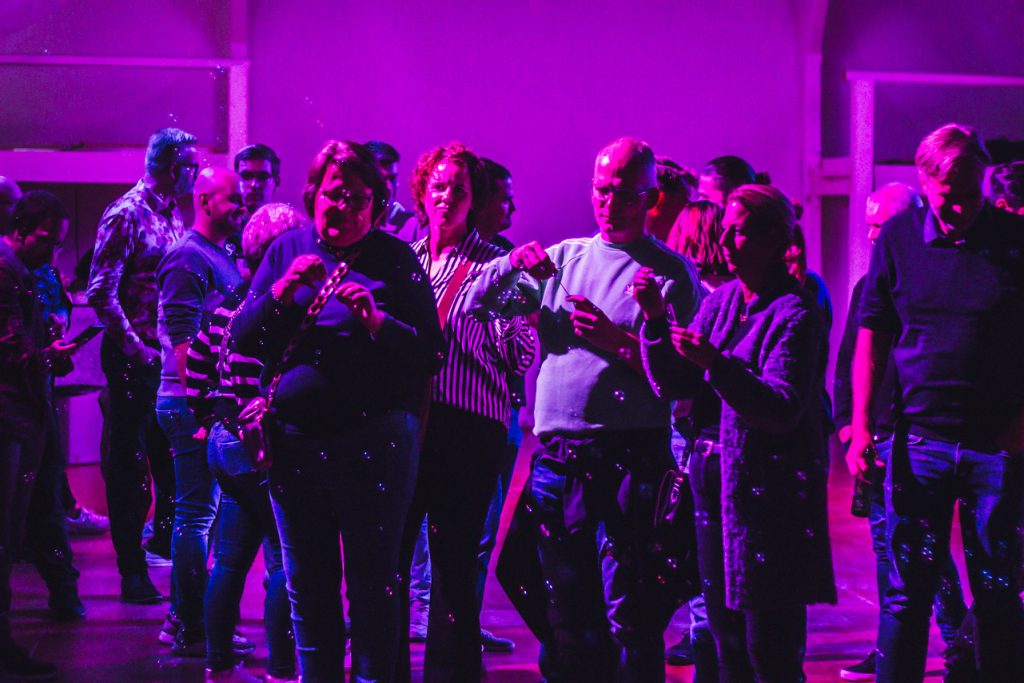 ‘Burst Your Bubble’ is een zintuiglijk en artistiek evenement dat onzichtbare barrières tussen dove, slechthorende en horende mensen doorbreekt. Bezoekers worden uitgenodigd om uit hun comfortzone te stappen en nieuwe vormen van communicatie, kunst en ontmoeting te ervaren. Iedereen is welkom, het evenement is toegankelijk voor dove, slechthorende én horende bezoekers.
